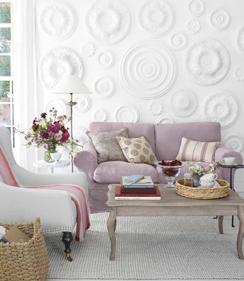 Los puedes adquirir de poliuretano que son mucho mas ligeros que los originales de yeso y pintarlos del tono de la pared para dar un efecto de relieve muy elegante.o combinarlos en colores, envejecidos y texturas consiguiendo un efecto muy creativo.