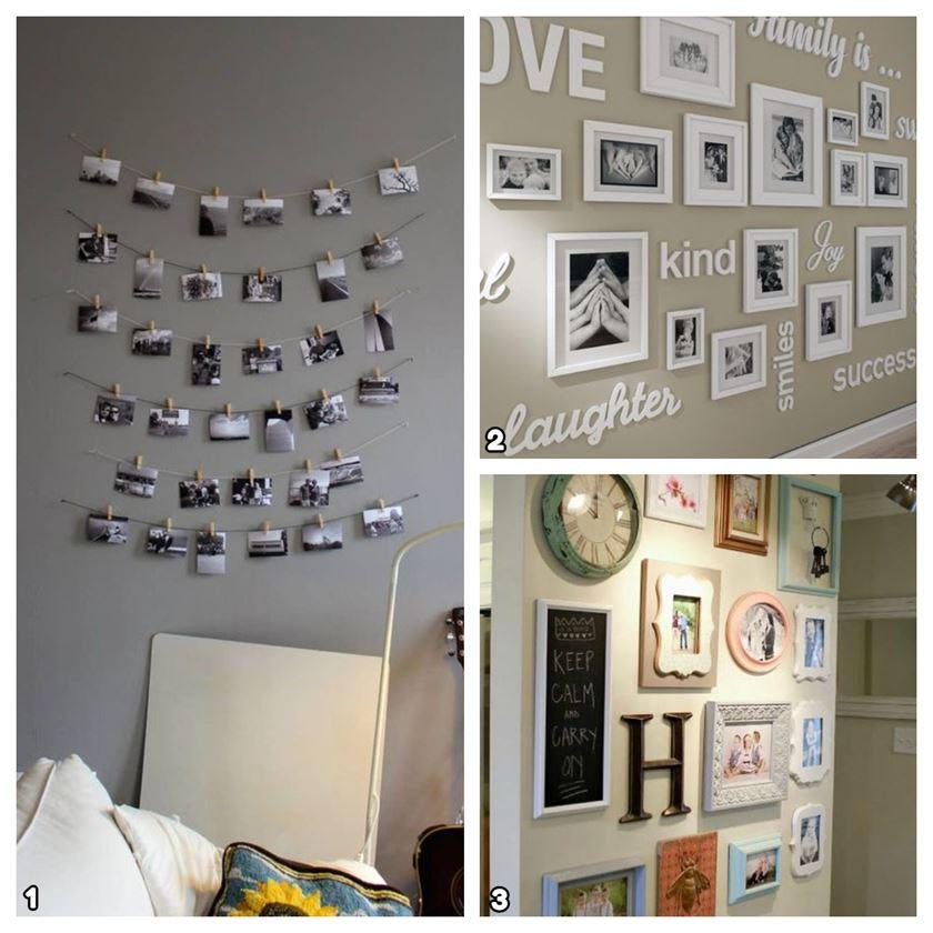 Esta forma decorativa, aunque sea muy general, siempre va a variar dependiendo de los gustos y preferencias de quien lo realiza. No será igual una decoración con fotos para el dormitorio de una chica universitaria, que para la nena que aún estudia en el colegio o para la pareja de recién casados.2 https://www.pinterest.es/pin/593208582159559057/