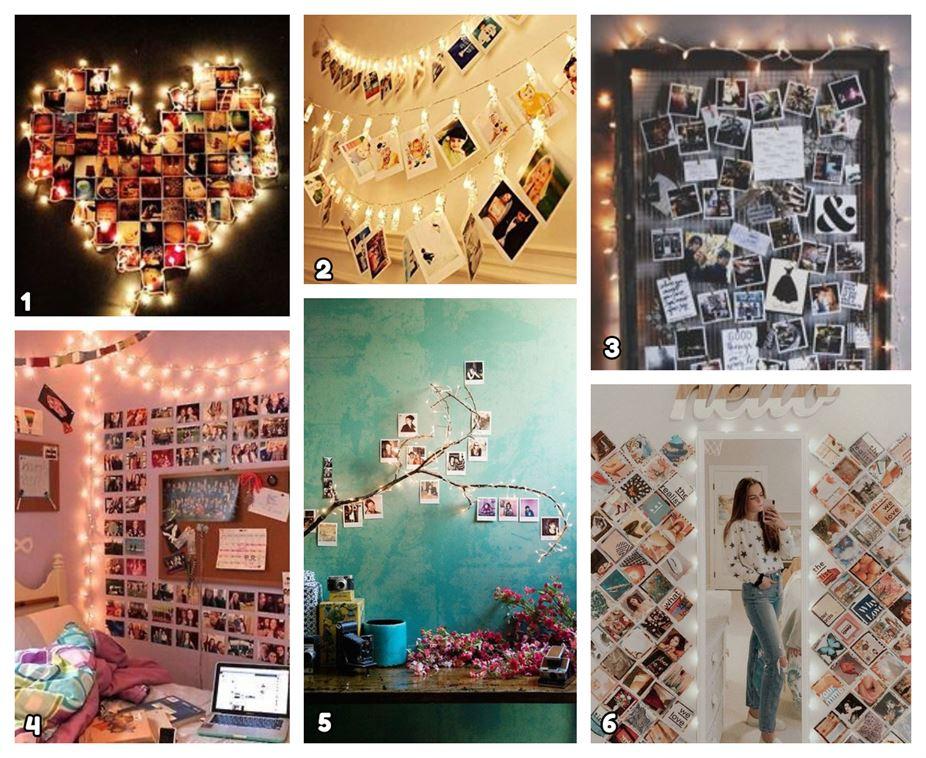 Decorar paredes con fotos y luces