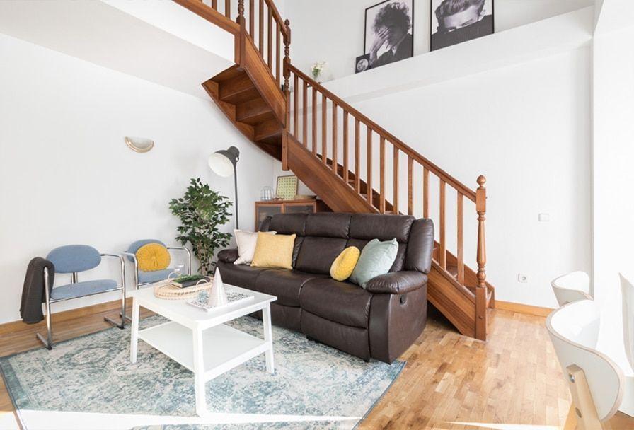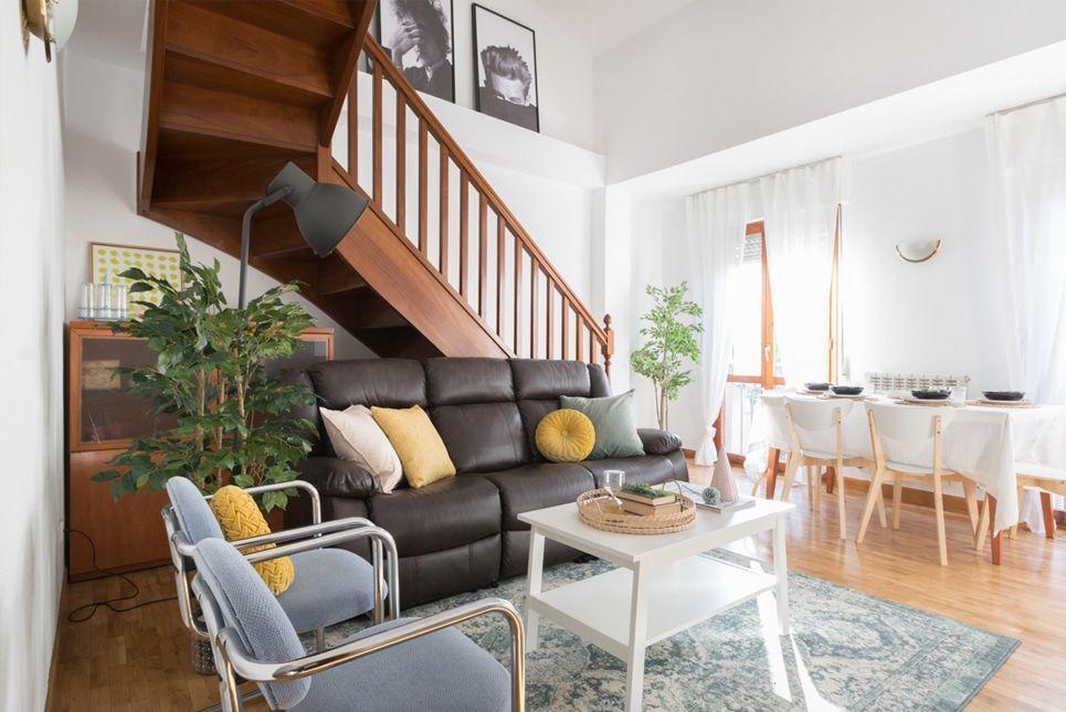 El primer proyecto que conseguí hacer antes de esta locura de crisis fue este dúplex. Cuando vi la viga de detrás de la escalera tuve claro que tenía que ser una parte clave del proyecto de home staging.