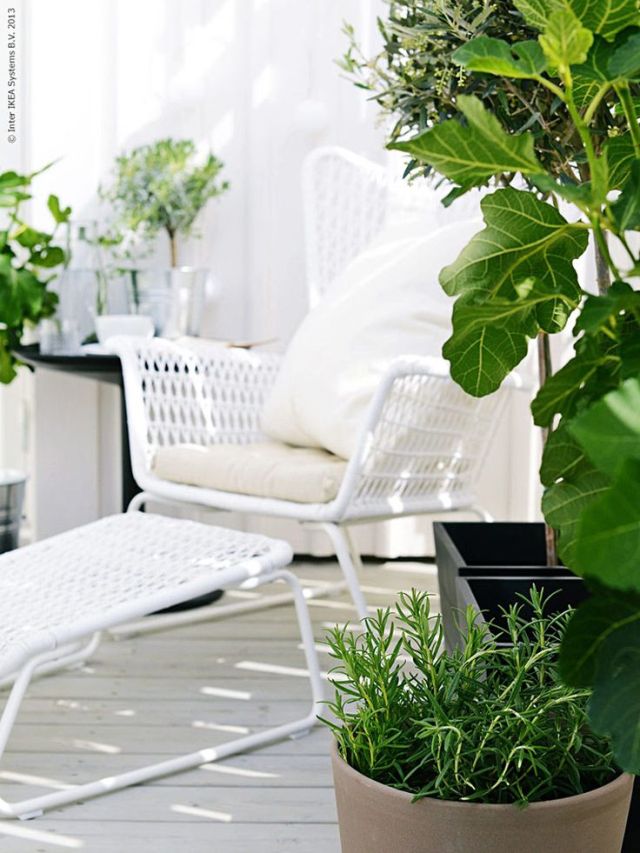 Pues eso mismo es la idea que te traigo hoy, un pequeño balcón decorado para el relax de una persona, con una base en blanco y negro y pequeños toques frescos que han conseguido con las plantas.