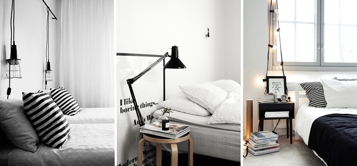 Aprovecha la mesita de noche: Es cierto que ahora se lleva mucho colocar cualquier cosa a modo de mesilla, sillas, taburetes etc.. pero te recomiendo que si no tienes mucho espacio lo aproveches al máximo. En este caso, opta por una mesita con bastantes cajones donde puedas guardar ropa o cualquier objeto que necesites tener a mano. Lo agradecerás.