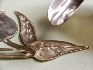 Para rellenar las zonas más profundas del repujado y para que no sufran abolladuras, rellenamos con vidrio liquido.