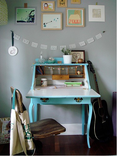 Me parece un mueble con mucho encanto que además permite dejar oculto los utensilios del escritorio y los papeles o libros. No me importaría hacerme con alguno antiguo y restaurarlo.