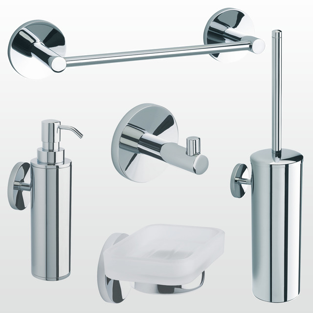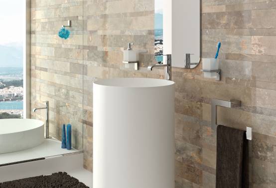 El toallero debe fijarse de forma que desde el lavabo o desde la ducha se pueda acceder fácilmente a él simplemente alargando el brazo. El colgador en cambio debe emplazarse fuera de la ducha para no mojar las toallas o el albornoz al ducharse. Los dispensadores de jabón suspendidos en la pared son una buena solución porque permiten mantener la zona del lavabo siempre seca y limpia, pero deben fijarse de forma que su utilización sea lo más cómoda posible. Las jaboneras y repisas permiten que gel y champú estén siempre accesibles para el usuario sin limitar el espacio de la ducha. Otra zona donde es interesante disponer de una repisa es sobre el WC, cuando éste está suspendido a la pared y tiene la cisterna empotrada. No sólo es útil porque permite disponer de un espacio adicional sino porque se trata de un espacio ideal para personalizar el baño y poner algún detalle de acabado.