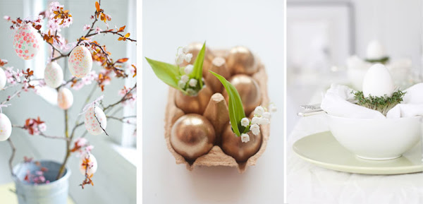 Pascua es síntoma de que el buen tiempo ya está casi entre nosotros y de que las flores vuelven a resurgir dando un estupendo color al paisaje que nos rodea, donde la luz, frescura y alegría vuelven apoderarse de todo. Crear una decoración de esta época es, además, sencilla y económica, pues para ello sólo necesitas algunos huevos cocidos, tintes de colores, pinturas o purpurina para darles color y algunas flores de temporada, cintas, papel... para componer centros como los que veis en las fotos y en los que podéis inspiraros.