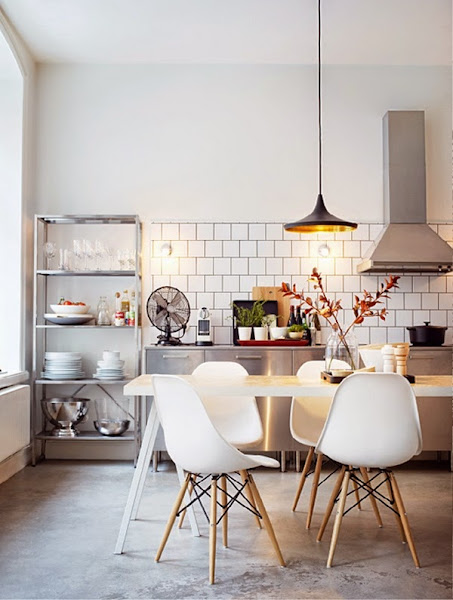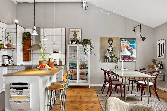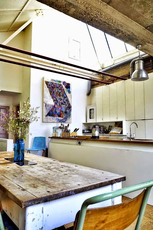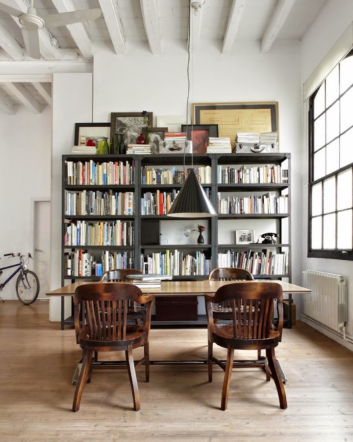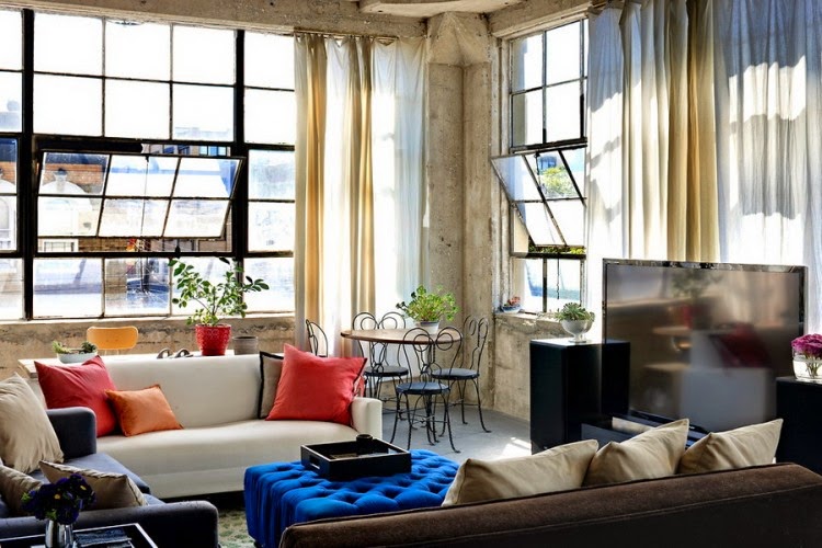 9. En cuanto a los complementos, otros objetos que pueden integrarse muy bien en este estilo son los ventiladores a lo grande, focos de cine como lámparas, elementos retro metalizados, algún instrumento musical reciclado, una estantería fabricada con cajas de madera, una bicicleta antigua restaurada en el pasillo o algún cuadro del mítico Andy Warhol, muy relacionado con la ciudad.