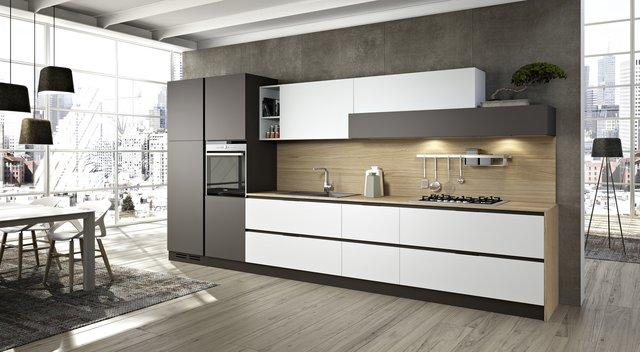 Este tipo de distribución no es quizá la más cómoda ni óptima. Al ubicarse en un mismo lineal todos los elementos clave de la cocina, lavado y cocción, perdemos el triángulo de trabajo necesario para la preparación de los platos, debiendo desplazarnos siempre a lo largo de una misma línea para sacar los alimentos del frigorífico, llevarlos al fregadero y cocinarlos. Es la mejor opción para las cocinas estrechas y alargadas, cuando sólo disponemos de una pared para colocar el mobiliario y los electrodomésticos.