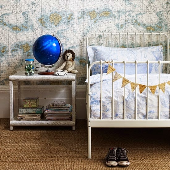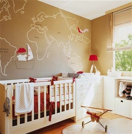 - Los "mapamundi" pueden ser la opción perfecta para el dormitorio de los más pequeños del hogar. No solo darán estilo original a la estancia si no que, también será una manera de que tus hijos crezcan aprendiendo. No es necesario que utilices mapas serios o reales, sino que pueden estar impresos en un papel con figuras atractivas o contener dibujos animados o incluso ser vinilos.