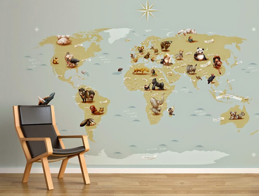 - Los "mapamundi" puedes elegirlos sofisticados, modernos, antiguos, divertidos? el estilo del mural dependerá tanto del medio que utilices para crearlo como del colorido del mismo. Puedes utilizar mapas a gran escala, papeles pintados o vinilos decorativos; las opciones son muy variadas.