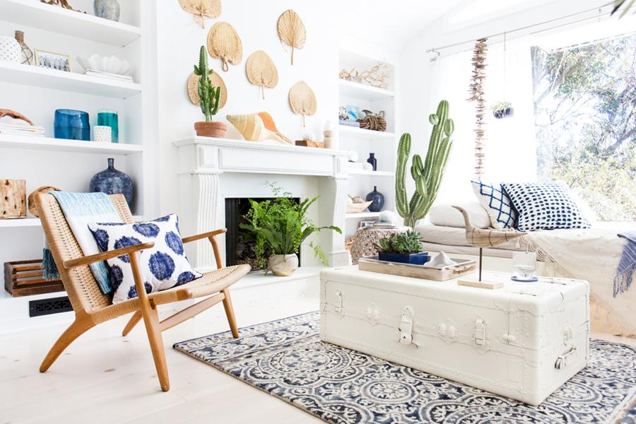 2.- Si eres de los manitas, el verano es un buen momento para renovar las paredes del salón y pintarlas en colores luminosos y vivos, que aportan frescura a la época de calor. El blanco es un color que nunca falla en las casas de verano, pero yo te propongo combinar el blanco de las paredes, con textiles y elementos decorativos en otros tonos como los limas, amarillos y azules. Con ellos ganarás de contraste y amplitud, ganando en dinamismo. Los salones cobrarán nueva vida.