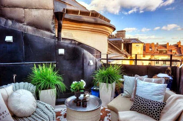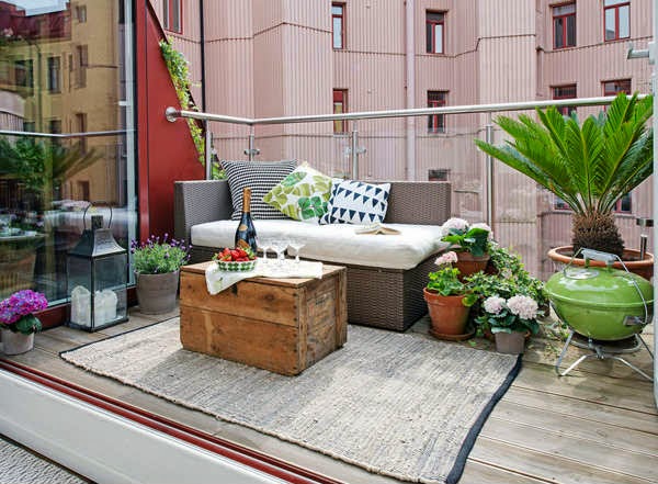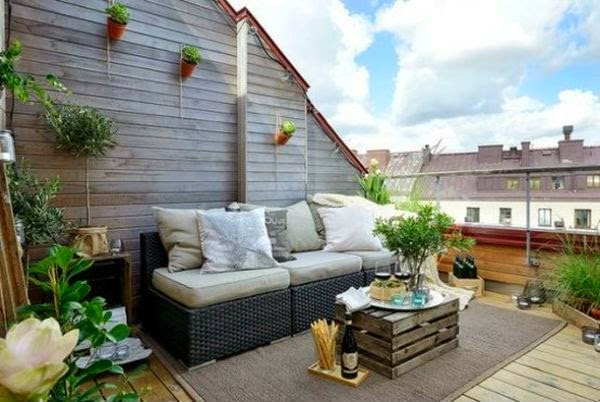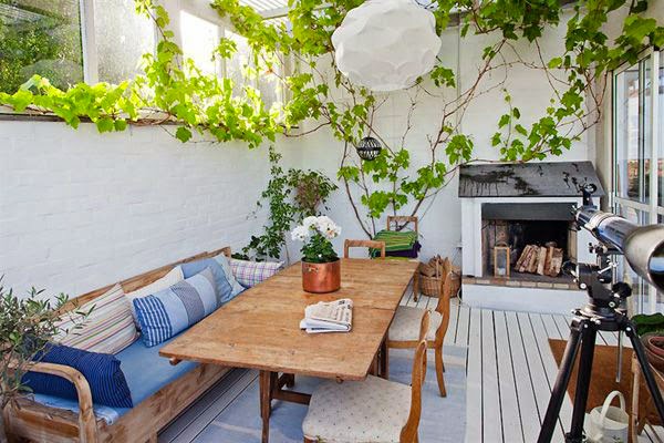 A veces, las cosas más sencillas son las más funcionales, de esos trastos que tienes en casa o encuentras en algún lugar y no sabes que hacer con ellos.. fíjate como unas simples cajas, una de ellas realizada a partir de un palet, han solucionado el problema de no tener mesa en estas terrazas. Y también pueden servir como asiento extra, un almohadón encima, y listo.