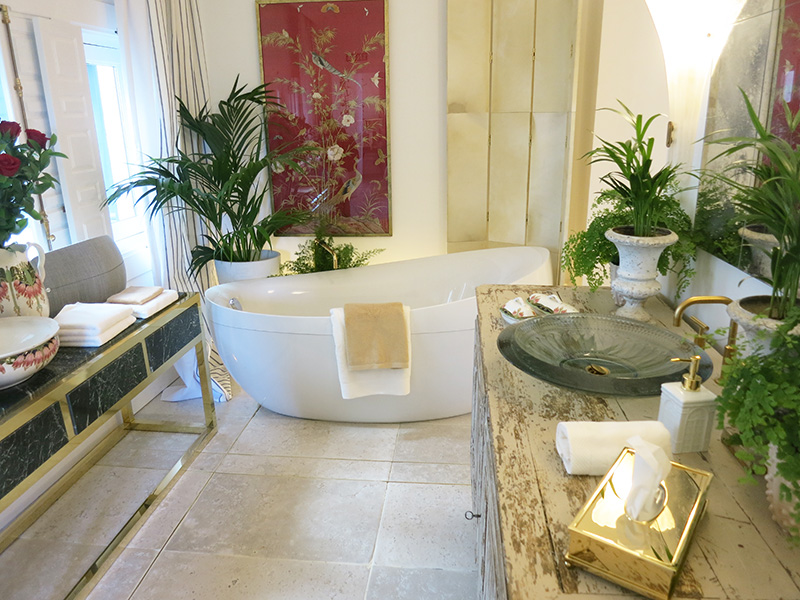 A continuación, uno de mis espacios preferidos de este año, el dormitorio y el romántico baño de Batik Interiores... entrar en este espacio, es quedarte sin palabras... Oooohhh! Los colores, los detalles dorados, la gran bañera exenta Aveo, la zona de tocador... se respira calma, relax... se para el tiempo...