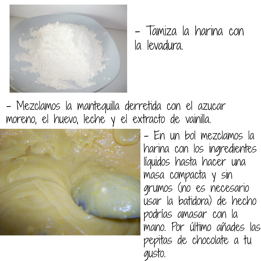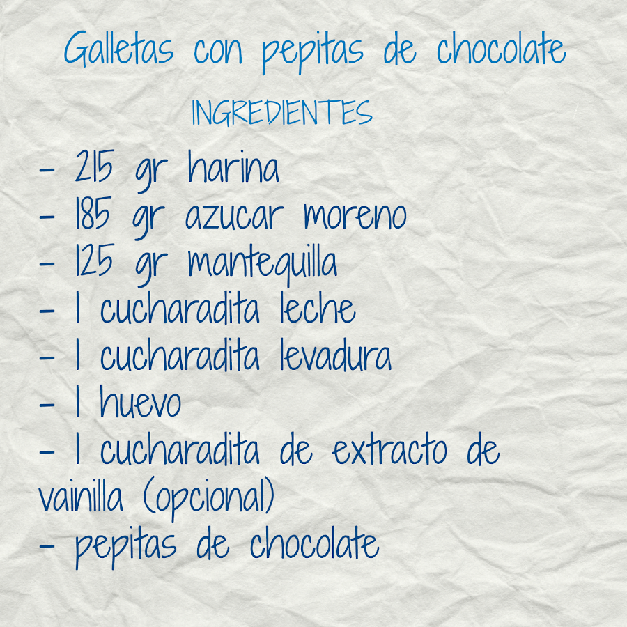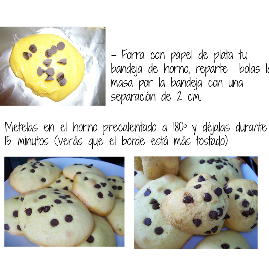 Os dejo una de las recetas que utilizo (estas de principiante), en este caso para hacer galletas con petitas de chocolate; si os gusta tomar algo dulce después de la comida...estas son perfectas como acompañamiento a la hora del café.