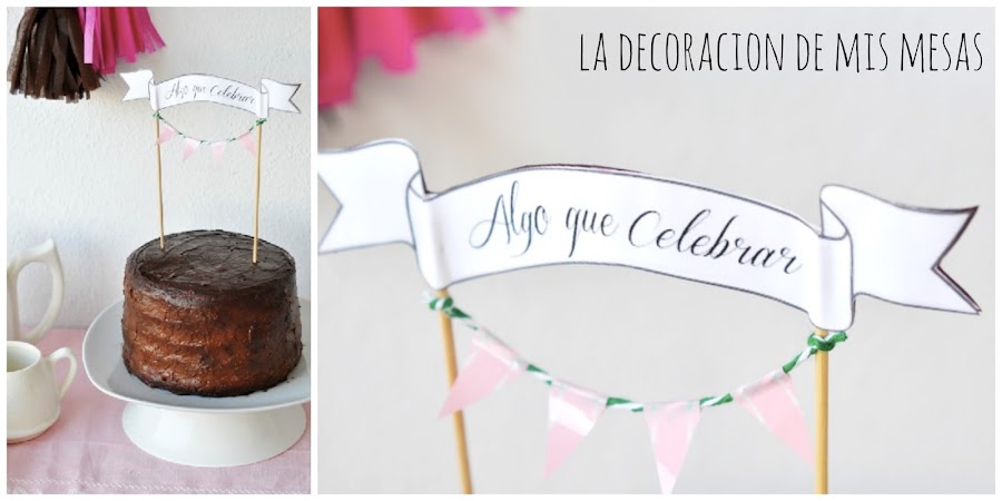 Un vistoso topper en forma de banner para la tarta con un mini banderín, dan color a la presentación y protagonismo a mi humilde tarta casera.