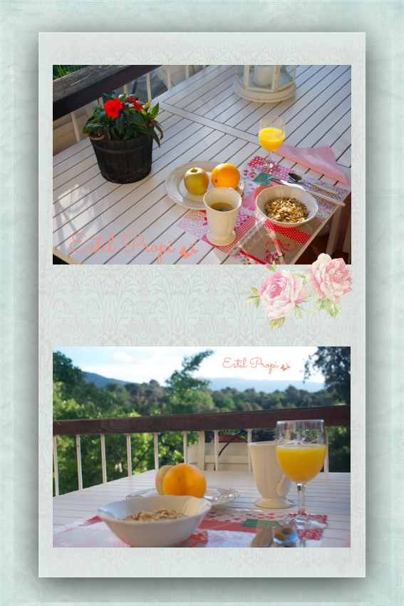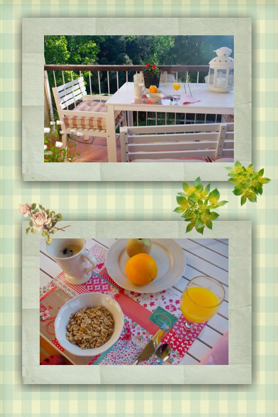 Antes de que se estropee el dia, en primavera no se sabe cuando van a crecer los nubarrones y van a tapar el sol, me preparo el desayuno y lo saco a la terraza.