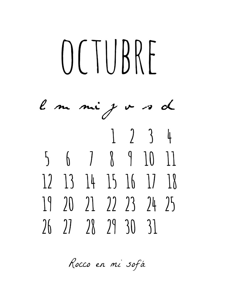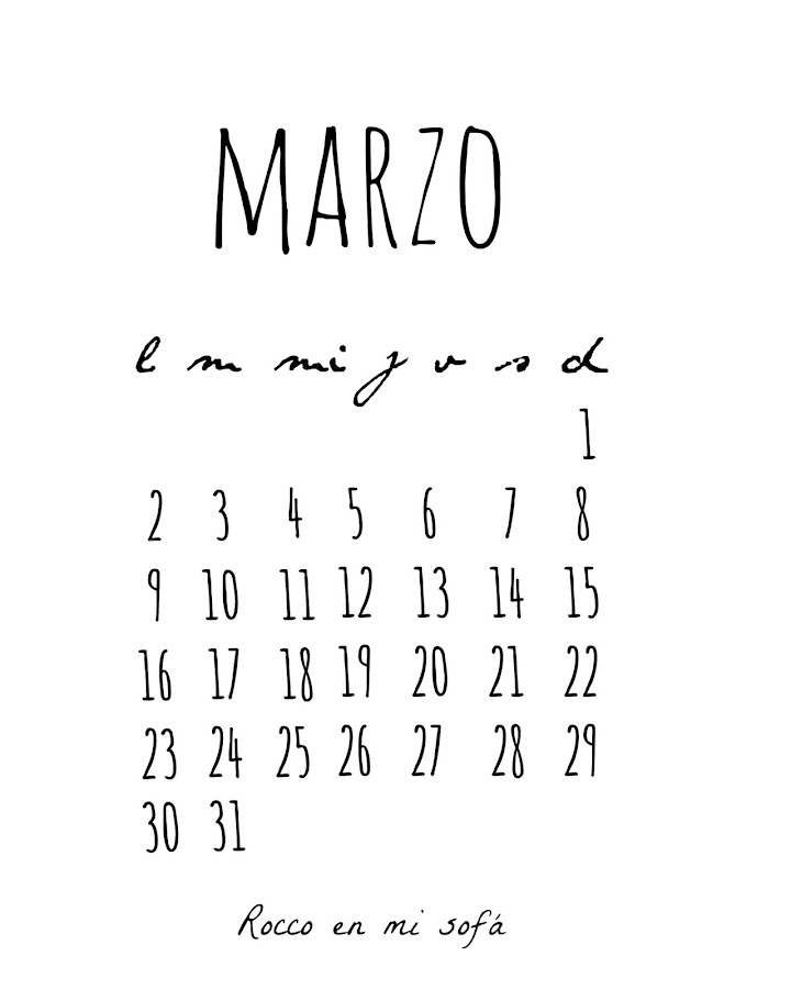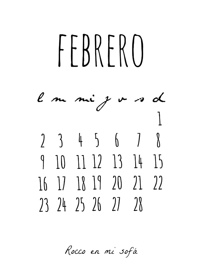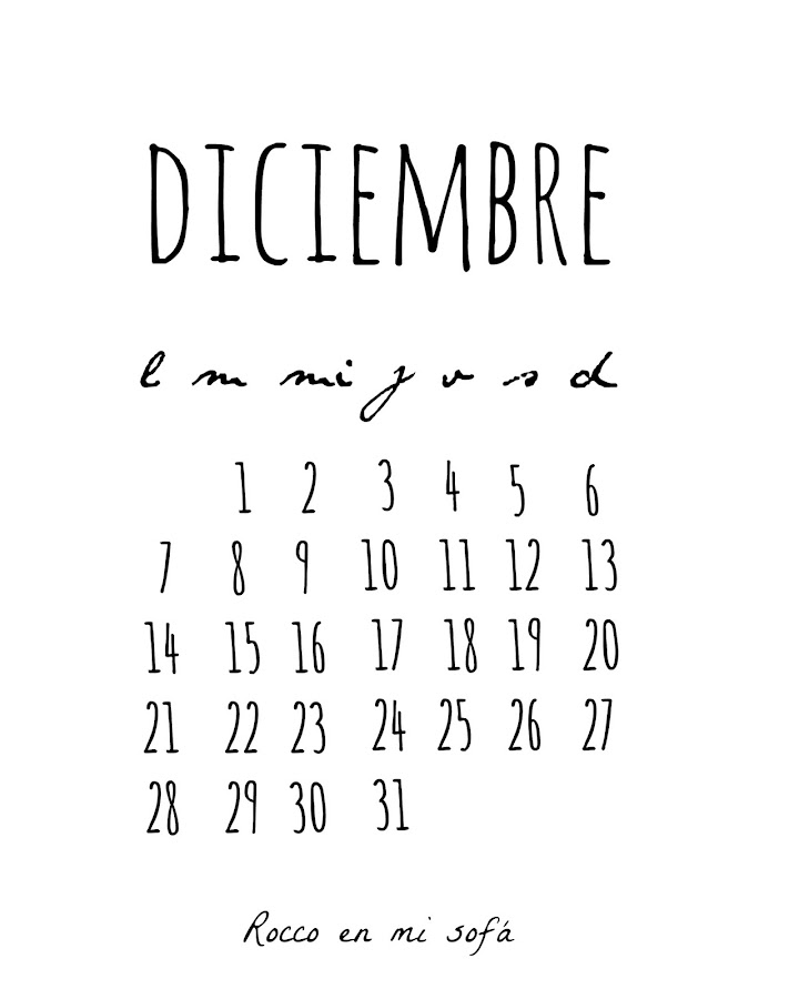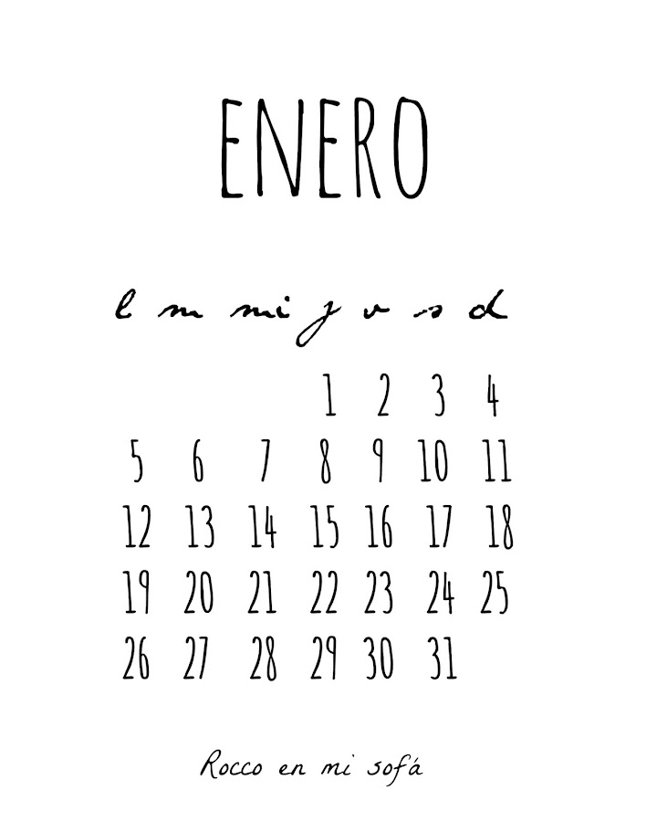 Quería un calendario de base blanca y letras negras, sencillo y sin ningún tipo de decoración salvo la propia tipografía, y lo mas importante, gratuito. Tras buscar en la red y no encontrar lo que buscaba, decidí hacer uno propio y por supuesto compartirlo con vosotros ¡Espero que os guste!