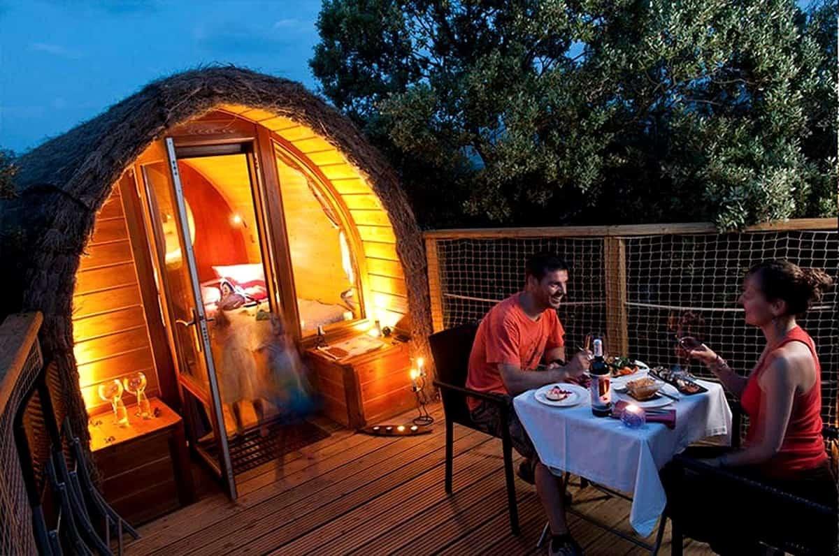 Fuente: pinterest Equipadas de lámparas portátiles, chimenea de bioetanol, lavamanos y chimenea. El desayuno se sirve dentro de una cesta, colgada de una polea. Cada cabaña tiene una decoración diferente. Es una experiencia para desconectar del estrés diario.