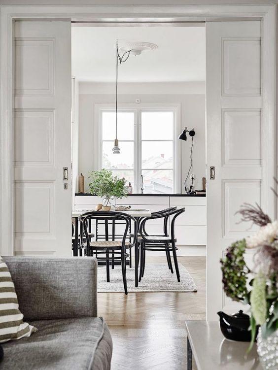 Os dejo unas fotos de inspiración para que veías el cambio tan radical que se le puede dar a una estancia, solo con el hecho de pintar las puertas, los marcos o las ventanas con contras. Muchas veces nos encontramos con casas antiguas cargadas de magnetismo y queremos dejarlo todo tal cual pero a la vez darles más luz y un aire más moderno. Creo que no hay nada que me guste más que las ventanas y puertas antiguas, los altos zócalos con molduras, incluso antiguas estructuras que separaban ambientes, con un golpe de color que rompa la monotonía de los espacios.