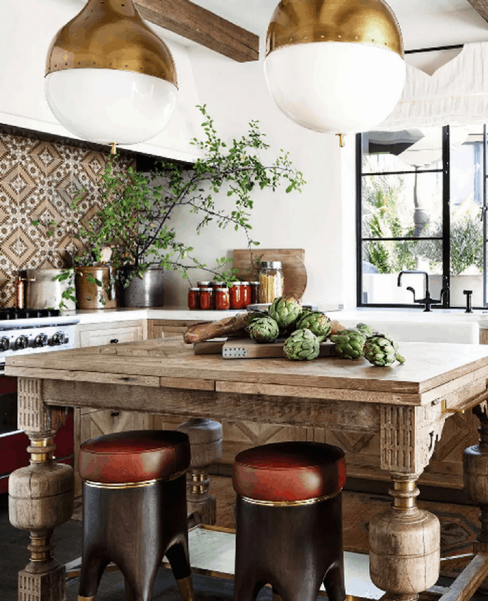 Las vigas vistas en el techo son características de esta tendencia decorativa.