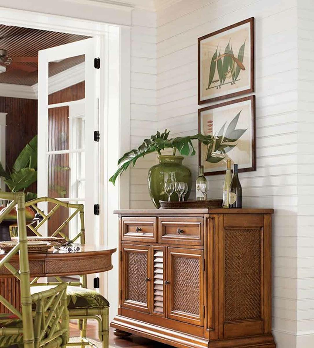 Fuente: pinterest En el estilo colonial se utilizan materiales autóctonos como maderas exóticas como caoba, teca, wengué, mango, iroko. Destacan las vitrinas, aparadores, librerías, camas, biombos, etc. La mezcla con objetos de otras culturas orientales será esencial en este estilo.