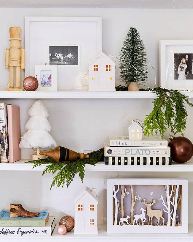 Hazte con algunos adornos que te gusten y colócalos en los estantes de tu librería. Si es necesario, guardar durante estos días otras cosas que se exponen durante el resto del año. ¡Ya las sacarás de nuevo después del día de Reyes!