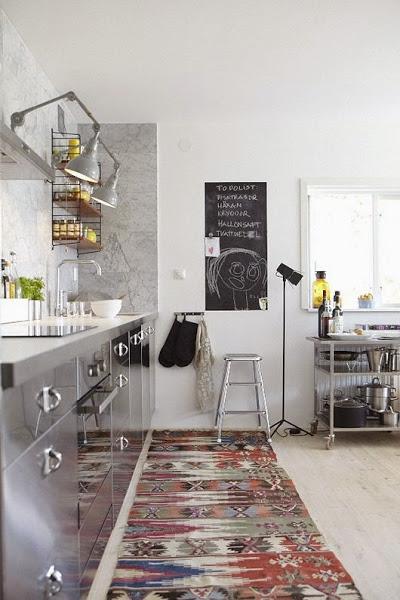 Holaaaaaa familia ¡Buenos días!, hace mucho que no os proponía un "Design Dilema" ¡jajajaja! seguro que lo echabáis a faltar, y justo hoy mientras repasaba uno de mis blogs de decoración favoritos, he caído en la cuenta, (vamos que de observadora y perspicaz no tengo mucho pa regalar), que últimamente no paro de ver como las alfombras, hasta ahora reservadas para salones y dormitorios, han invadido muchísimas, por no decir la totalidad de las cocinas.