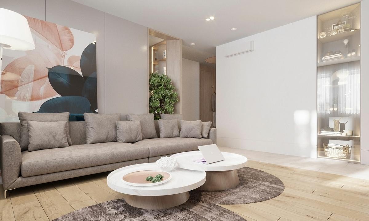 Toda la decoración hace que el resultado sea un apartamento sencillo, con materiales naturales y de alta calidad ( suelos y azulejos de porcelana de gran formato en el suelo, complementado con pintura de alta calidad y techos equipados con luces integradas ). Todo esto permitió obtener un interior minimalista y al mismo tiempo armonioso, suavizado por colores naturales, textiles y pinturas originales. ¿Qué te parece?