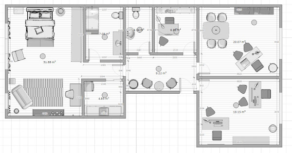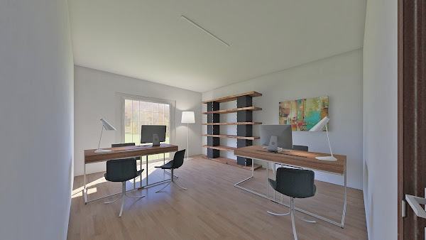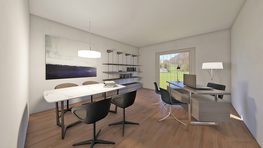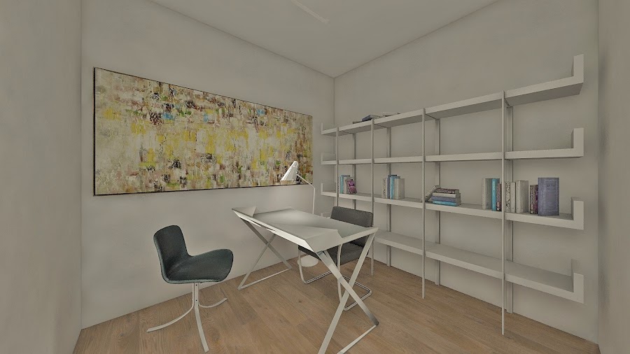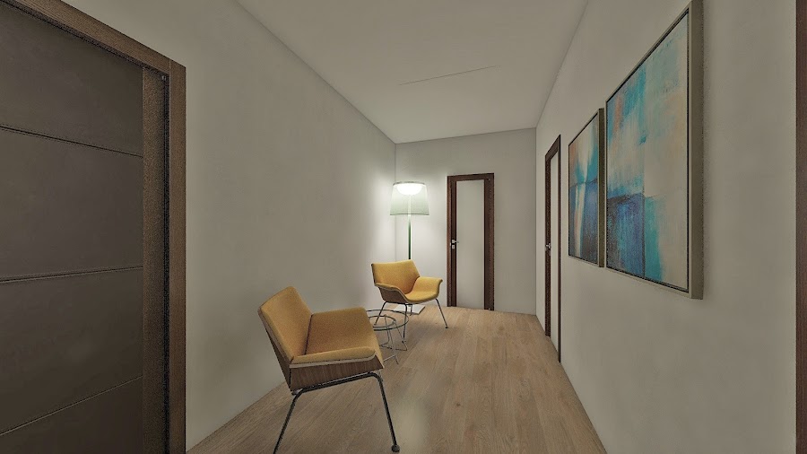 En la zona de acceso se ubica el recibidor, aseo, un despacho de secretaría y en la fachada principal un despacho doble y el de dirección.