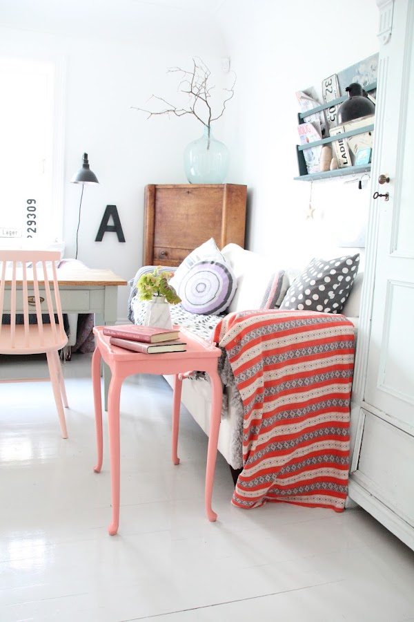 ¿Os atreveriais a que vuestro salon girara en torno al rosa? Pues lejos de parecer algo cursi... (vale, y aunque no vaya con muchos) esta mesita o la silla de color rosa, se han convertido en ese detalle fundamental para una estancia muy personal y un estilismo delicado.