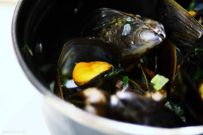 Por supuesto, no faltaron los clásicos mejillones al vapor servidos con chips.