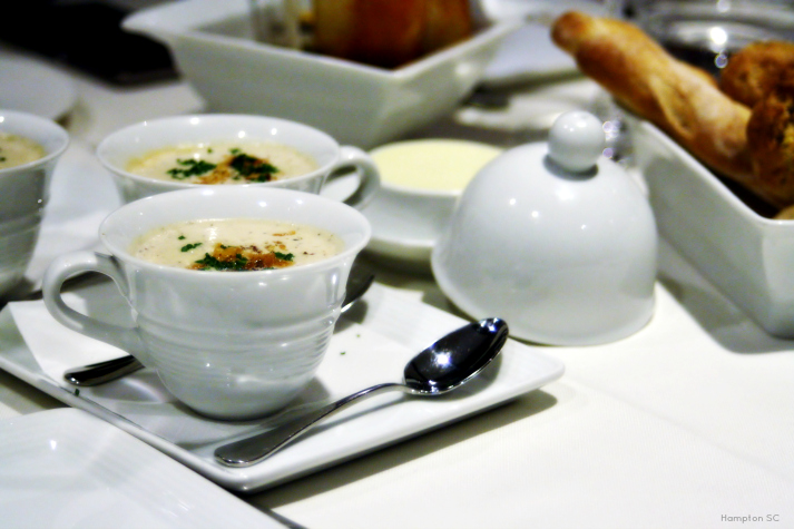 Como entrantes empezamos con una deliciosa crema de mejillón