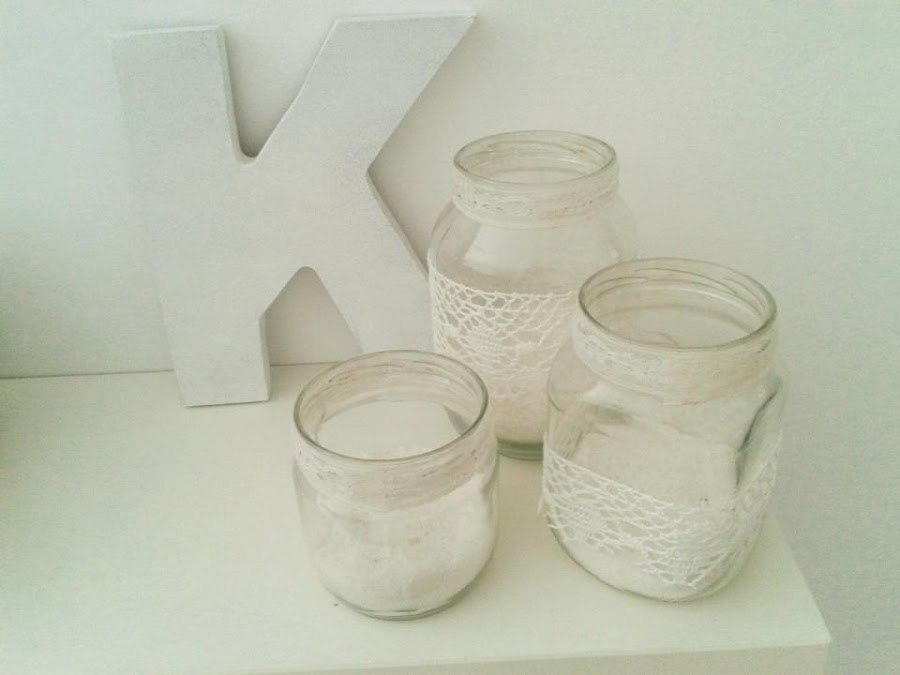 Los famosos botes de conserva reutilizados como Portavelas que os enseñé aqui, ya han encontrado un hueco en el recibidor junto con una letra K que tenía hace un tiempo, estaba bastante deteriorada así que la he pintado de blanco. Lo mejor es cuando enciendo las velas, aunque esta feo que lo diga se convierte en un rincón encantador.