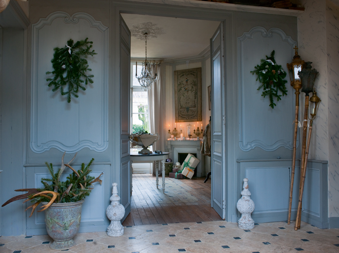 Situada en el antiguo pueblo de Champagne Sézanne, fue habitada por Madame Marie-Françoise de Beauharnais. Un estupendo descubrimiento donde el aspecto que adornan las paredes se realiza en base a una pátina de madera verde grisáceo. La lámpara de araña de hierro forjado que cae sobre el salón es monumental, y el decorado con el drapeado tafetán cubriendo toda la superficie del suelo le da un ambiente de navidad muy teatral. Destacan en esta decoración el sofá Gondola bordado en petit point (Luis XVI), los sillones cubiertos de cáñamo, los asientos Marquise retapizados por los dueños ... todo maravillas de la delicadeza. La entrada a la casa, amplia y luminosa, nos descubre la pequeña sala de recepción con solado en damero de ajedrez pintado.