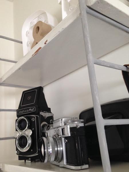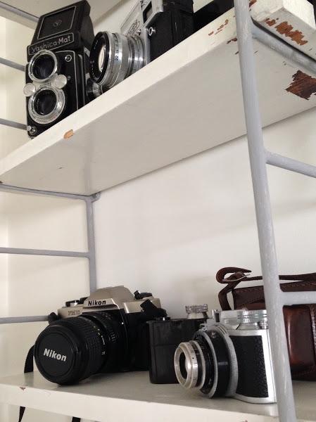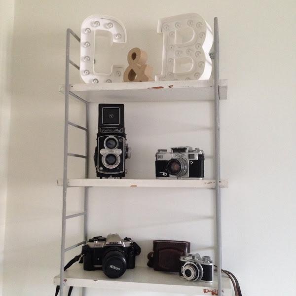 Al principio teníamos la duda de que el resultado fuera el adecuado, hasta nos llegamos a plantear que teníamos que haber pintado las baldas y haber dejado las estructuras tal cual. Pero finalmente estamos encantados ¡queda genial!, pues le da a nuestra mini-colección de cámaras el toque rústico que se merecían.