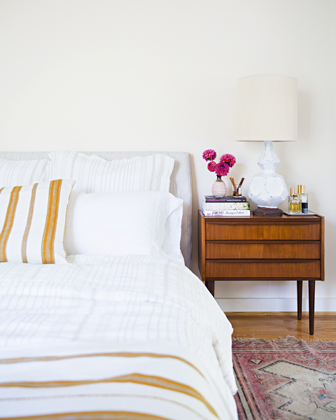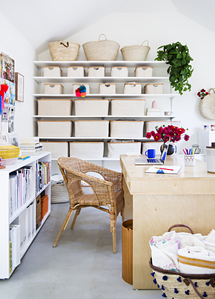 La puerta amarilla de la primera imagen que os muestro hoy da paso a una decoración luminosa y colorida, que crea una atmósfera primaveral con textiles frescos y flores repartidas por la vivienda.