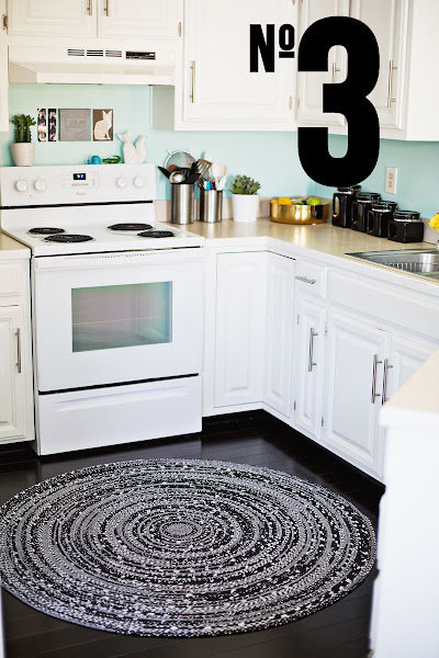 Con el Nº 3 esta maravilla de ALFOMBRA REDONDA CON CUERDA Y TELA que nos trae A beautiful mess. Es quizá la más elaborada, por eso de que utiliza una maquina de coser para unir las tiras de tela a la cuerda e ir creando la forma redonda de la alfombra.