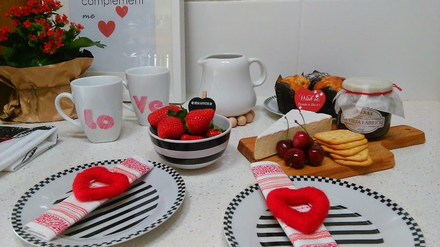 En mi caso mi marido y yo solo coincidiremos el 14 de febrero en la hora del desayuno, el trabaja ese día y a la noche celebraremos los Carnavales con amigos. Pero no pasa nada, el desayuno es un momento tan bueno como otro para hacer algo especial.