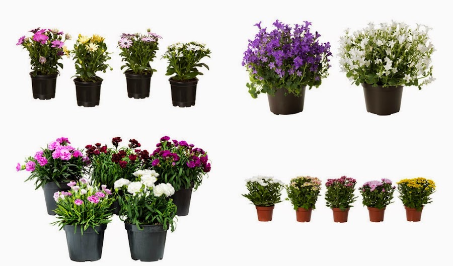 La segunda compra indispensable, flores, flores y más flores, tenéis una gran selección en grandes establecimientos o invernaderos (estas son de Ikea)