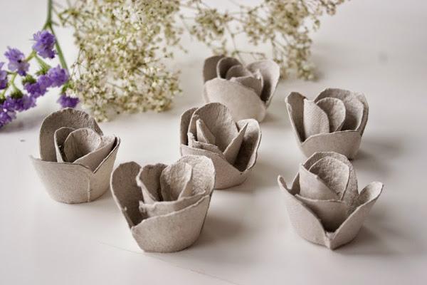 El procedimiento para hacer las flores de cartón con las hueveras es bien sencillo, pero como hay que cortar con bastante precisión, y el cartón es bastante rígido, lo haremos los padres ;)