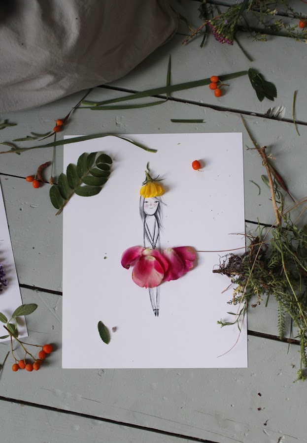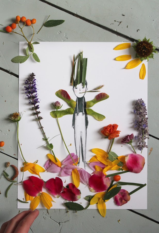 Hoy os hemos traído varios de sus dibujos que nos han llamando especialmente la atención: Dibujos llenos de naturaleza, creados a a partir de de hojas, flores, pétalos, ramitas, semillas... ¿no os parece una manualidad ideal para pasar un a tarde divertida con los peques o incluso para incluirla en una fiesta de hadas, como la que vimos la semana pasada?