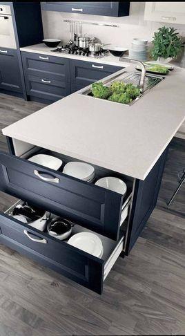 Zona baja: es mejor tener poco muebles anchos que muchos estrechos, aprovecharemos la capacidad mejor. También debemos de planificar la distribución, empezando por los armarios esquineros, el mueble bajofregadero, el lavavajillas y el mueble bajoplaca, ellos nos marcarán la mejor distribución.¿Armarios o cajones? La zona de muebles bajos debe de ser ergonómica. Los cajones y los extraíbles nos darán una mejor visión de su contenido y nos facilitarán el acceso. Desde nuestra opinión son mucho más cómodos.
