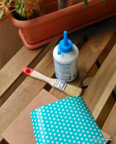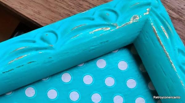Con un papel de regalo de la misma tonalidad forramos la parte trasera del marco.