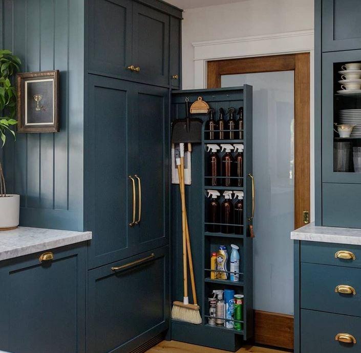 En cuanto a las escobas, aspiradores o fregonas, deben estar guardados o escondidos, al igual que los cubos de basura.