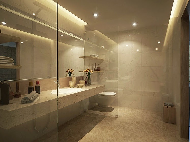 Aunque no hay un carácter muy privado en este inodoro, el espacio no intimida. Es un espacio cerrado para bañarse y un baño de cristal que en realidad abre la habitación y la hace parecer muy gigante.