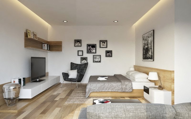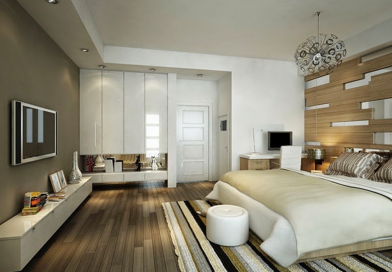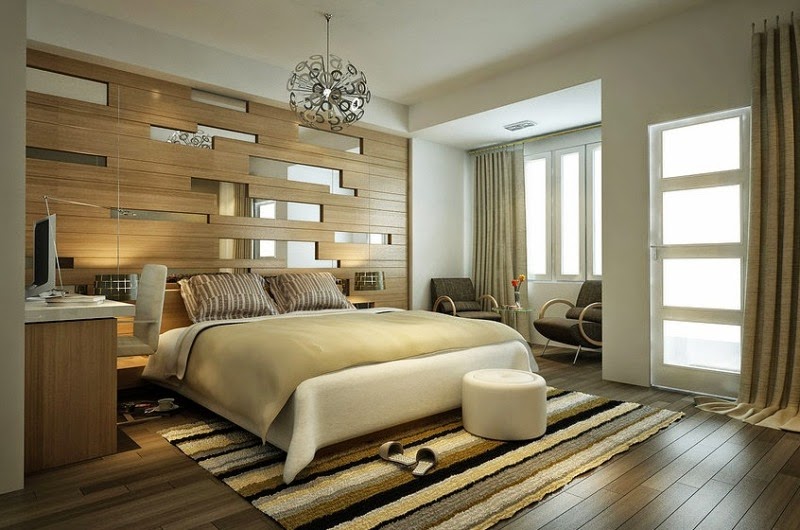 Este sitio, con la cama diseñada en forma lineal, podría ser muy sencillo para los ojos. La pared de acento detrás del colchón es creada por largos tablones de piquetes con espejos esporádicos. La muestra lineal idéntica se descubre dentro de la alfombra de piso de madera y el espacio de rayas.