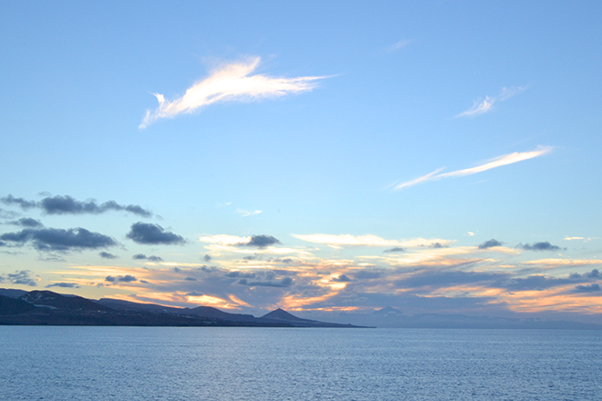 Hay placeres en la vida que son impagables y uno de ellos es, que te sorprendan un día cualquiera y vengan a por ti con una bolsita y una merienda para disfrutar del atardecer, para dar la bienvenida a la noche. En Las Palmas se produce algo fantástico, desde la Isleta puedes contemplar el Este, el Sur y el Oeste, así que mientras los últimos rayos de sol hacen presencia detrás de Tenerife, la noche camina por el cielo desde la ciudad en esa danza eterna. En sólo son unos minutos el mundo te muestra una cantidad de colores increíbles, donde antes había un turquesa ahora un azul marino intenso, el azul del cielo se mezcla con naranjas, rosas,? el olor del Atlántico cambia, el sonido de las olas, te envuelven esos matices cargados de vida, de sensaciones agradables. Pequeños placeres que me hacen sentir feliz.