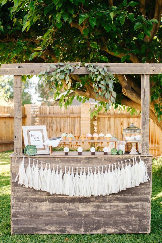 Puedes crear mensajes en letreros utilizando también partes de palet con frases graciosas o utilizar banderines para decorar la parte superior de tu bar de verano.