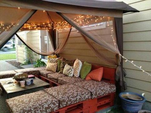 Para crear una composición similar a esta es fácil, solo tienes que conseguir unos 18 palet para hacer la parte de la cama (esta cantidad de palet es porque van en dos alturas, pero puedes hacerlo con una cantidad inferior) y para la parte del respaldo unos 4 o 5 palet.