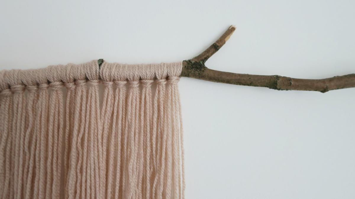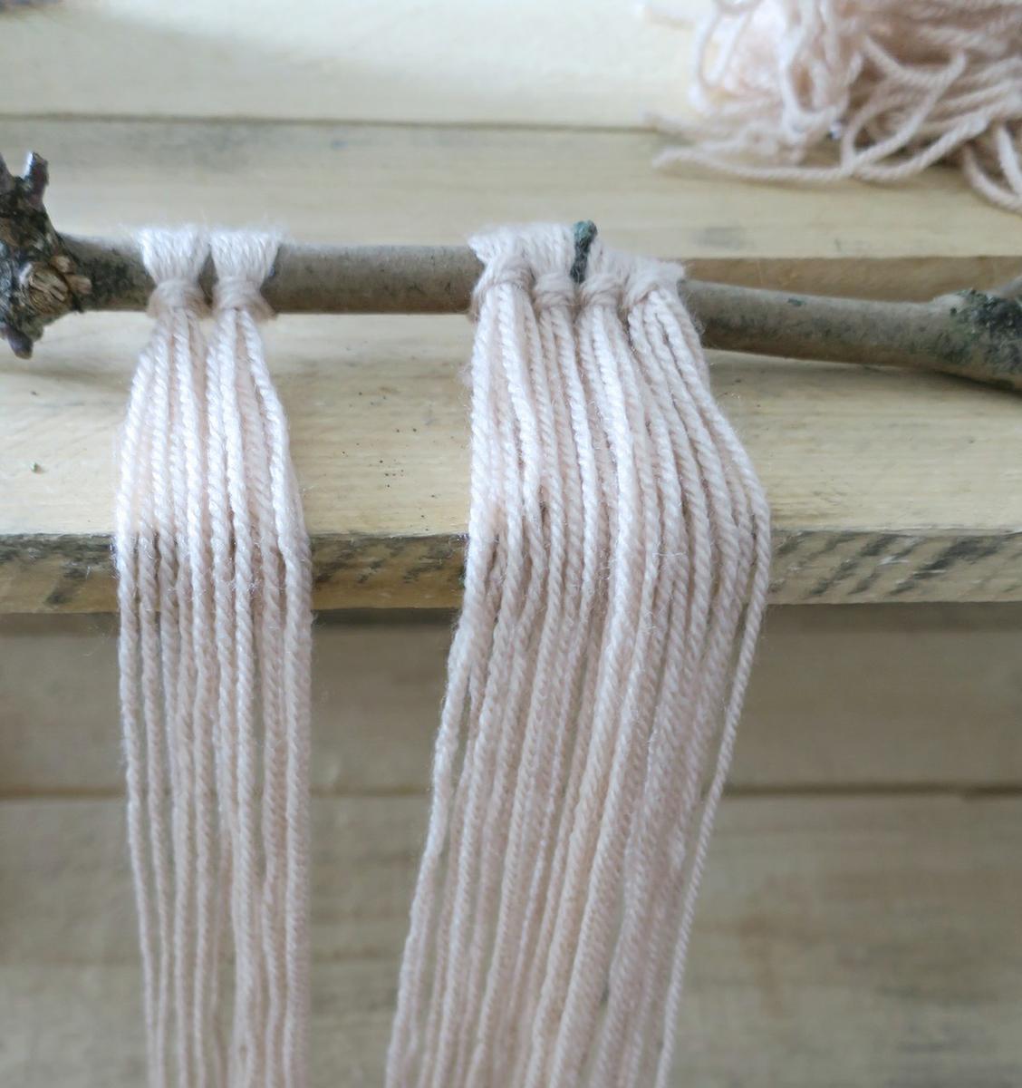 Cuelga las lanas de la rama de la siguiente manera. En este caso las he colgado de cuatro en cuatro.